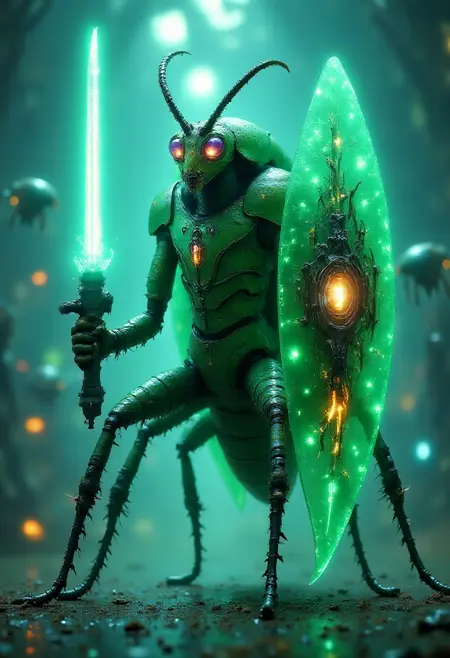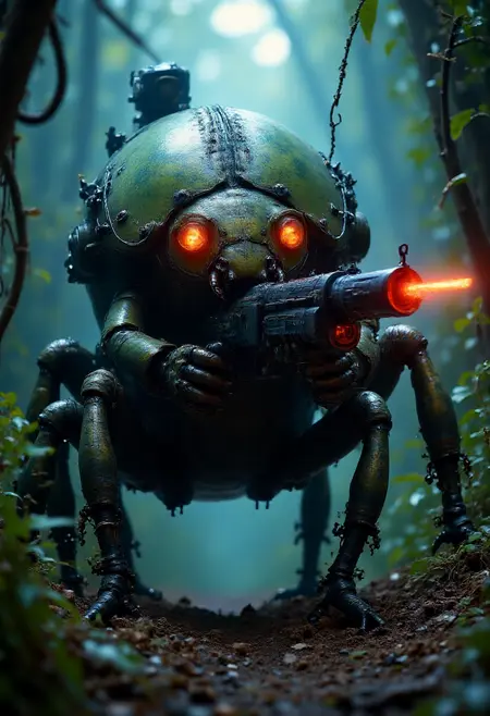 이 LoRA는 무기를 장착한 전투 장비에 버그를 생성합니다. 트리거 단어 유무와 관계없이 잘 작동하지만, 트리거 단어를 사용하면 약간 더 강한 결과를 볼 수 있습니다. 더 거친 외관을 원한다면 강도를 약 1.5로 높이고, 더 자연스러운 사진적 미학을 원한다면 0.5에서 1 사이로 유지하세요.