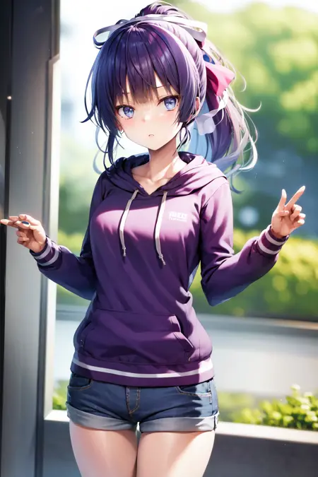 캐릭터 트리거: 1girl amikura ponytail hair ribbon