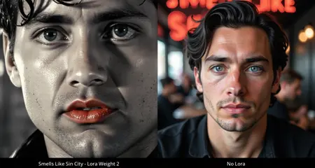 This is an experimental style lora for Flux dev - trying to get the Sin City style. Over contrasted black and white with colour acents. It works goor with weight 0.8 or higher and good in combination with other loras.