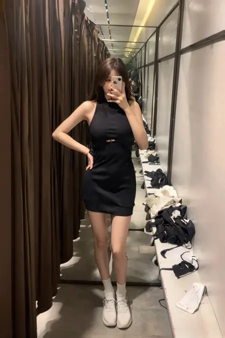 (1) The trigger word for Lora is "fittingroom." It is recommended to set the weight to 0.8; if the weight is too low, it may resemble a regular room rather than a fitting room.