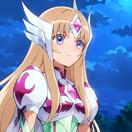 Aquila Yuna, 1girl, solo, long hair, blonde hair, brown hair, blue eyes, purple eyes, anime coloring,,