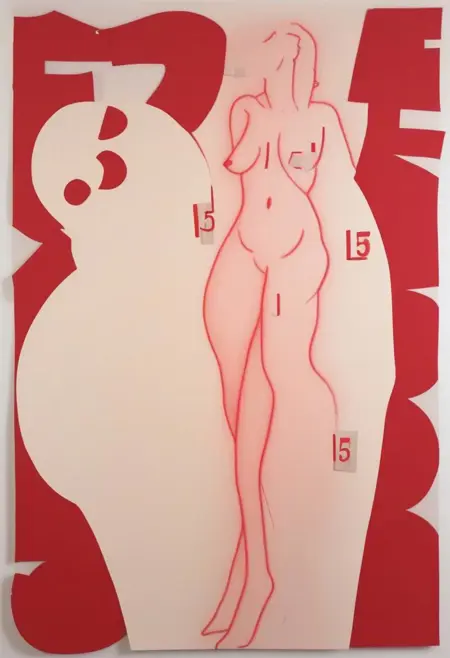 "그래피티, 스프레이 페인트, 1명의 소녀, 추상, 흰색, 검정 디테일, 빨강 액센트, 대형"
