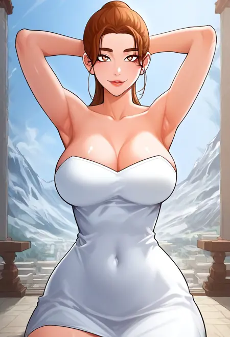 (( lora:baek_ja-in:1 , baek_ja-in, 锐利的浅棕色眼睛,清澈的眼睛,明亮的瞳孔,美丽的眼睛,美丽的浅棕色头发,美丽的马尾辫,巨大而蓬松的乳房,纤细的腰肢,宽大的臀部,美丽的皮肤,自然美,超美女性,迷人女性,超级性感女性,欲望十足的身材,拥有诱惑性露骨身体的性感女性,性感体态,丰腴身材,性感美艳,))