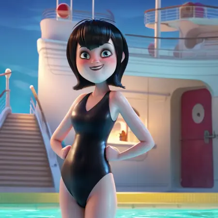 I add dress just like in the movie example from hotel Transylvania 3 of vacations dress of Mavis with flower and also I add swimsuit too and I make fix quality de form and body too.