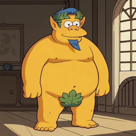 警帽, 裸体, 面部毛发, 月桂冠, 尖耳朵, 叶子遮挡, 赤脚,