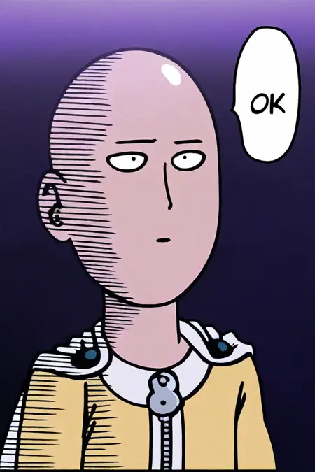 プロンプト2:onepunchman_meme、白い会話風船、英語のテキスト、ミーム、パロディ、並行線、インパクトライン、シンプルな背景、白い背景、横顔