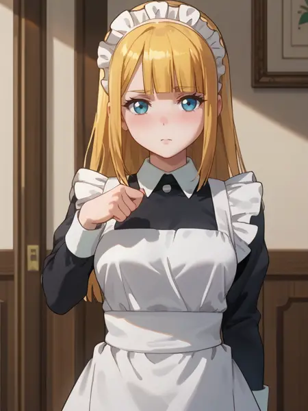 tuareninya,long blonde hair,straight hair,bangs,blunt bangs,blue eyes