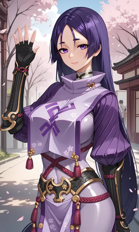 (보라색 바디수트:1.5), 가슴 커튼, 로프, 달팽이, 장갑, 풍선 소매, 주름진 소매, 팔꿈치 장갑, 손가락 없는 장갑, 일본 갑옷, 골반 커튼, 코테, 타바드