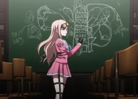 学習素材:Danganronpa V3とDanganronpa Sのすべての公式ミウ・イリマのスプライトと画像。さらに、他の公式画像や高品質なファンアートも収集しました。また、Danganronpa 1, 2, Sの背景を大量に使用し、V3ではやや少なくしました。最後に、Danganronpa the AnimationとDanganronpa 3の画像も使用し、スタイルの選択を可能にしました。ただし、ミウはこれらのアニメに登場しないため、マコトのような他のキャラクターと比べると正確性はやや劣ります。