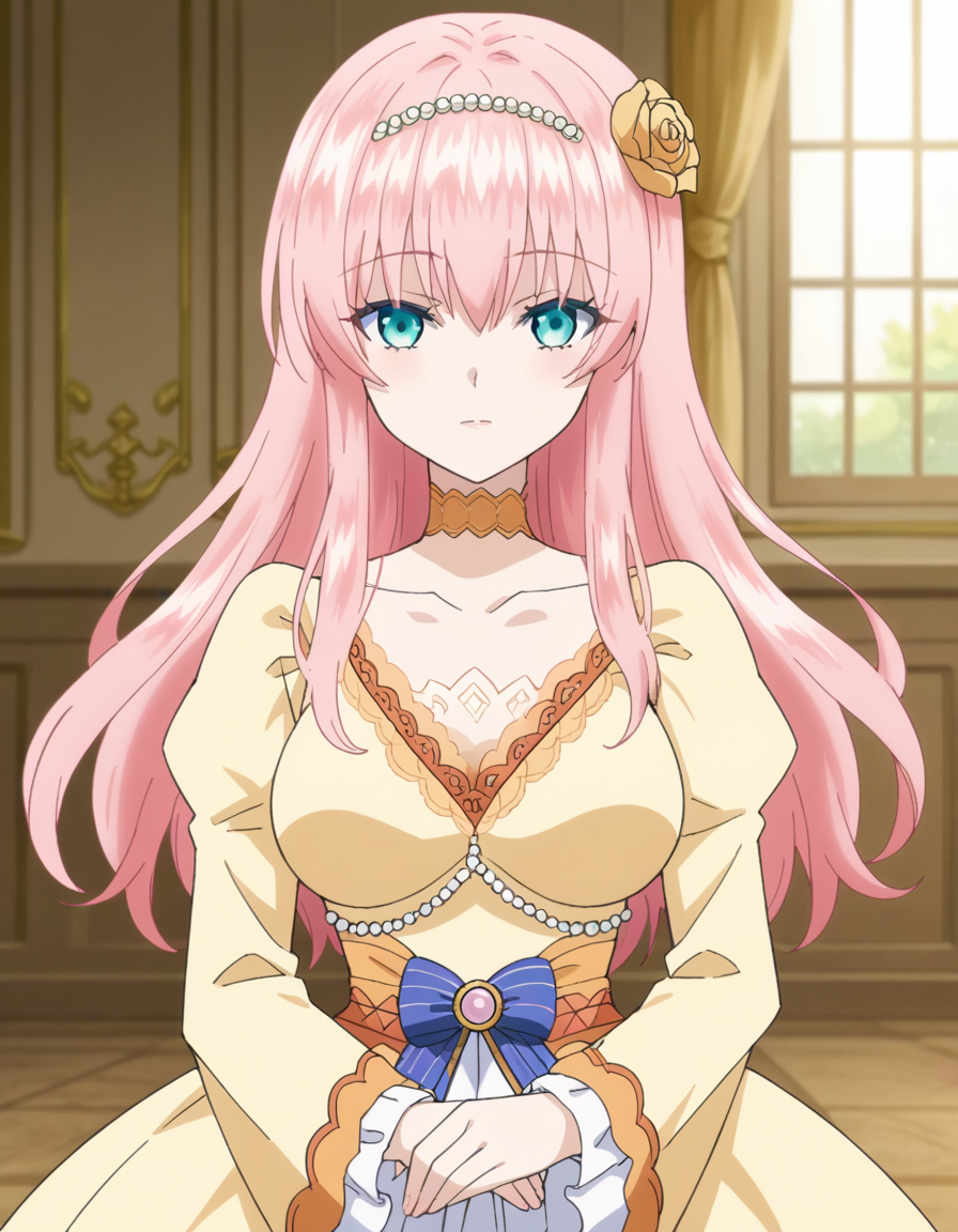 (yellow_formal_dress,yellow_lace_choker,rose,hair_ornaments,:1.0),