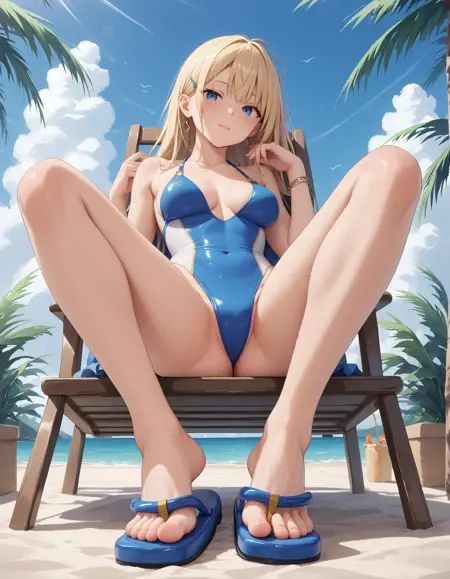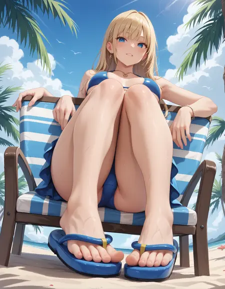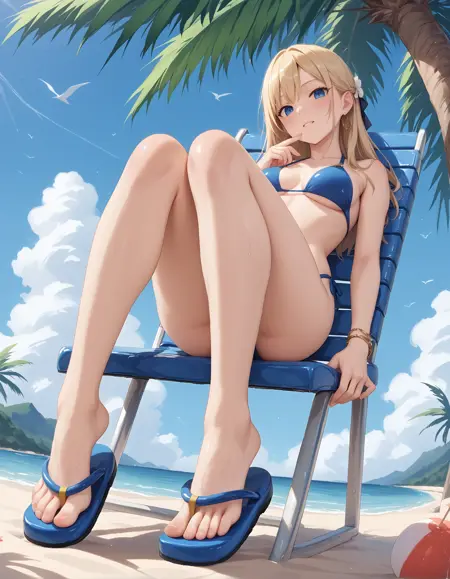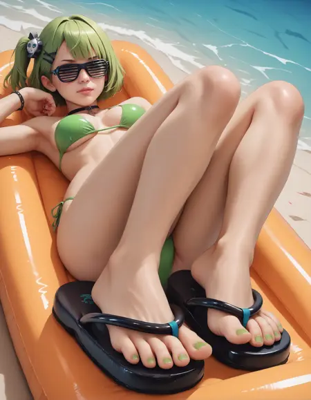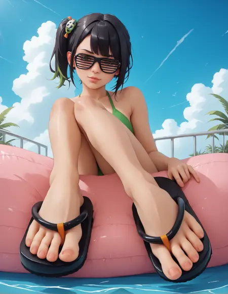 In distant shots, you'll probably just get regular flip flops. Inpaint to achieve the unique visual features. Close-ups should be fine as-is. None of the showcase images are inpainted.