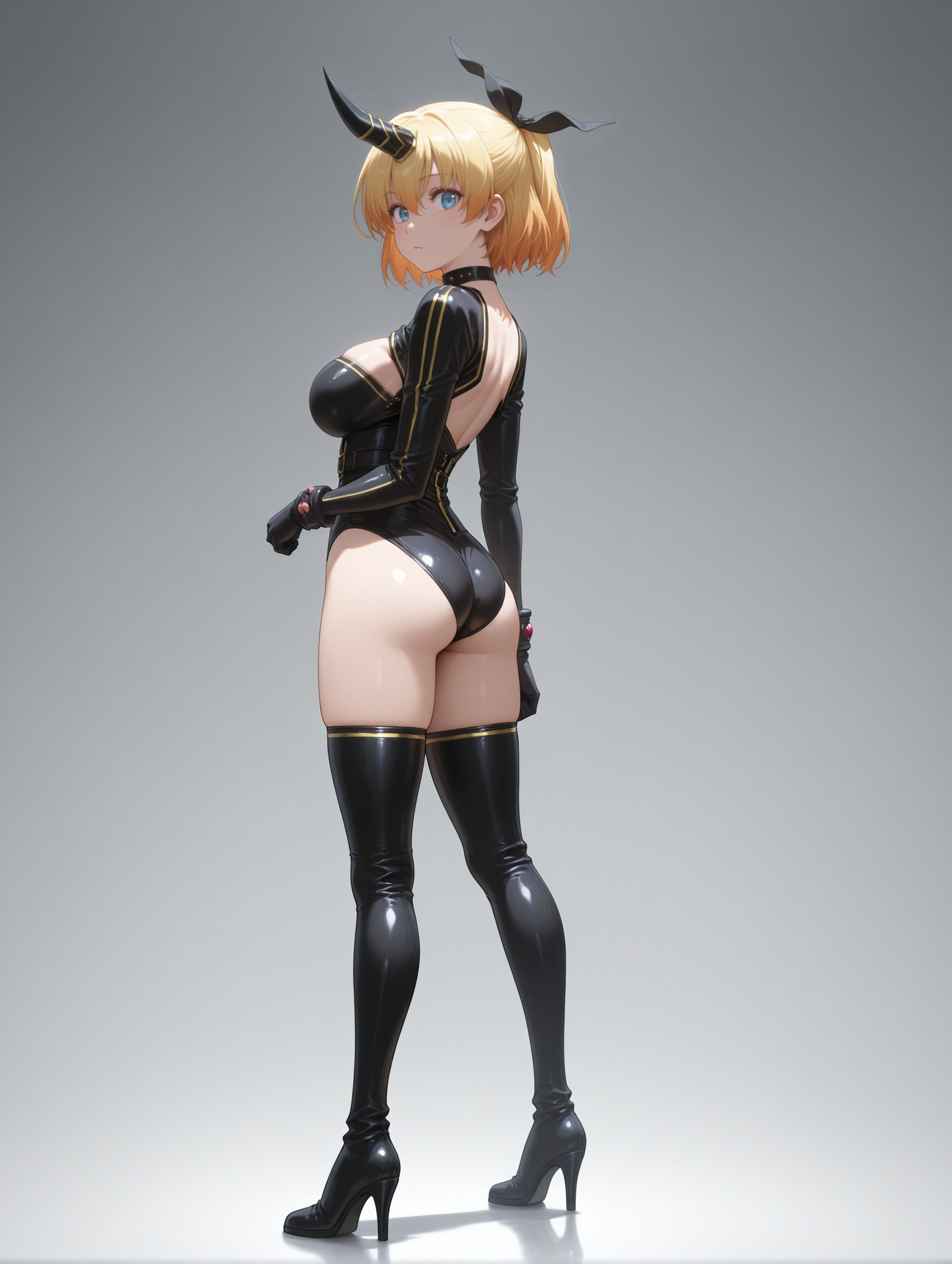 角,单角,露胸,手套,连体衣,黑色紧身衣,过膝袜,高跟靴