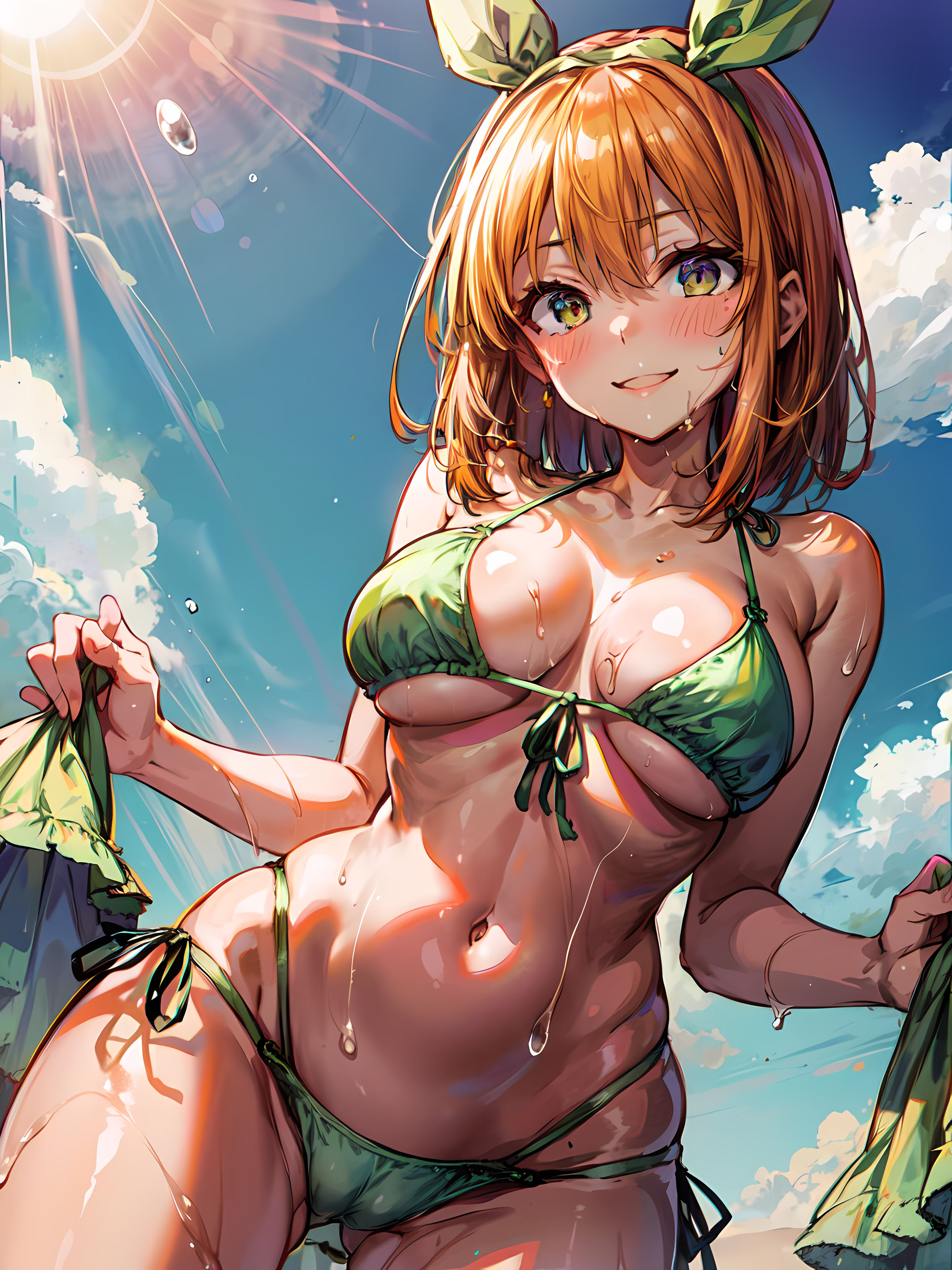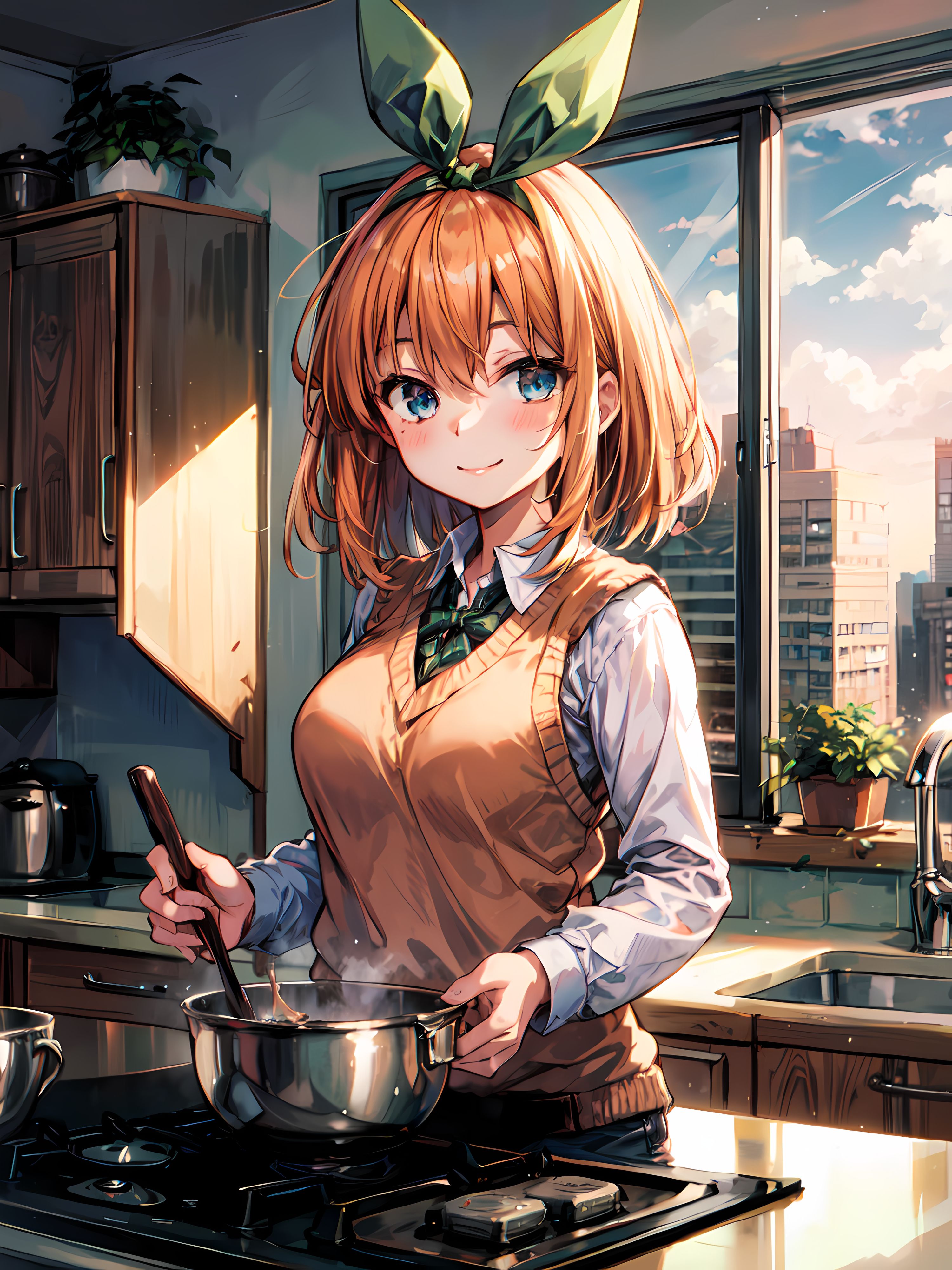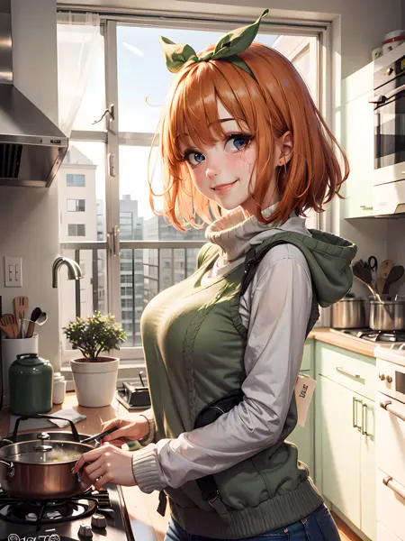 由我本人来说,叶月中野是我画得较好的角色之一,这个模型非常灵活,你可以自由发挥,如果想要丝带的话,请注明绿色丝带。此外,如果你使用毛衣背心,我非常有信心它会生成她平时的穿着样式。