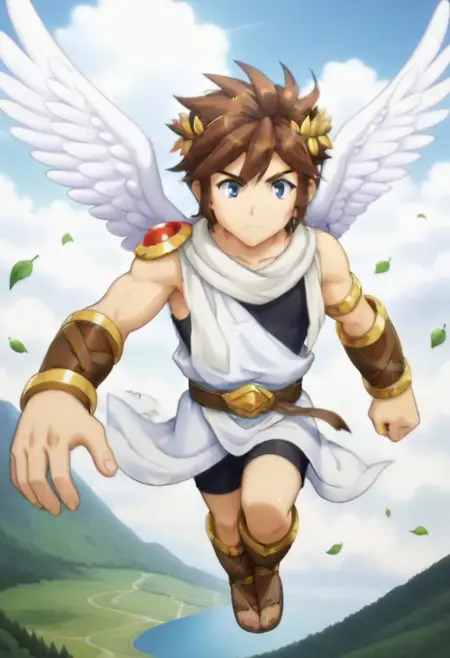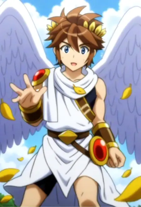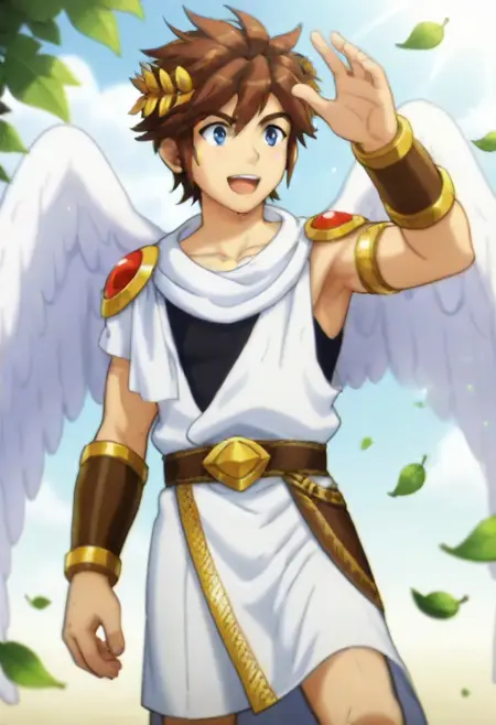 | 训练词汇 | Pit, kd icarus uprising video game, pit from kd icarus uprising video game已复制! gold leaf wreath crown, white short chiton, sleeveless, exposed shoulders, golden brown gauntlets, gold rings on left arm, brown belt, gold buckle, exposed legs, ancient sandal boots, angel wings已复制! |