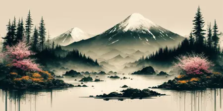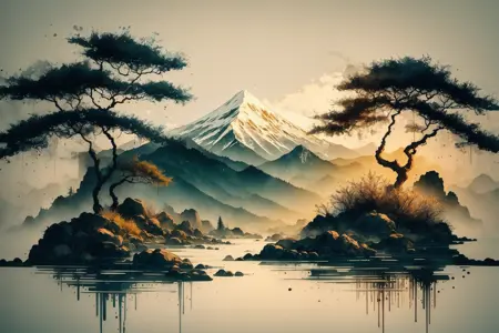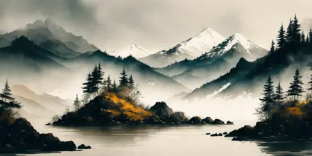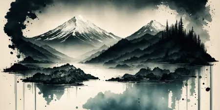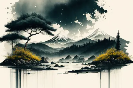 Start with white background, scenery, ink, mountains, water, trees. Modify after you successfully get the effect.