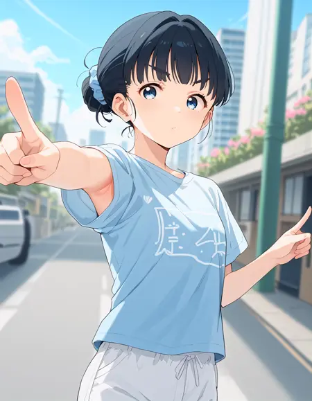 tiara basori, black hair, short hair, hair bun, (thick eyebrows:0.6), blue eyes, mole on neck