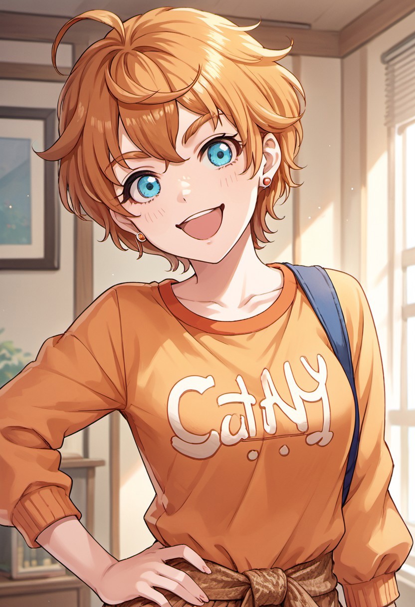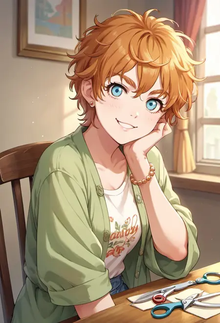 :cathy graham, 短发, 蓝眼睛, 橙色头发