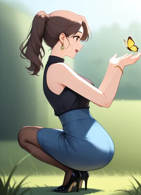 来自Pixiv的创意,简单地旋转角色的下半身,让你能从正面看到她的臀部。但旋转腰部的情况非常罕见,我尝试搜索更多类似的图片,却发现有许多艺术家都创作过此类作品,甚至3D模型也最为常见。该模型在60张来自不同艺术家的图像上进行了训练。
