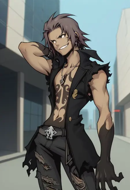 追加: open jacket, open clothes, tattoo, tattoo on chest,