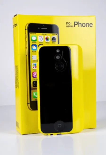 这是一张高分辨率照片,展示了一款由“无名”生产的(产品)包装盒。包装盒以黄色为主,设计简洁。正面中央是(产品)的大幅图像,呈长方形,表面为金属黄黑配色。(产品)具有(描述/特征)。“无名”标志醒目地印在包装盒上。