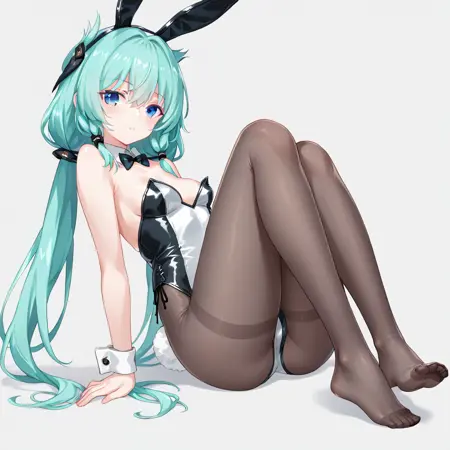 aqua hair, blue eyes, low twintails, very long hair