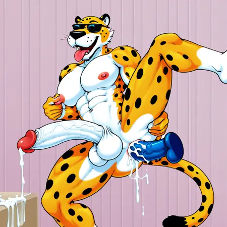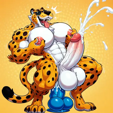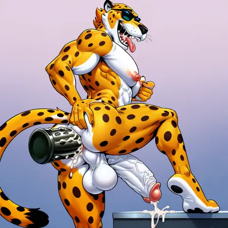 Chester Cheetah,Furry,Cheetah,Chester,Sun Glasses,Black Nose,White Shoes,White Shoes with Orange Spheres,White Hands,Orange Skin,Black Spots,White Counter Shading,White Chest and Belly,Beard