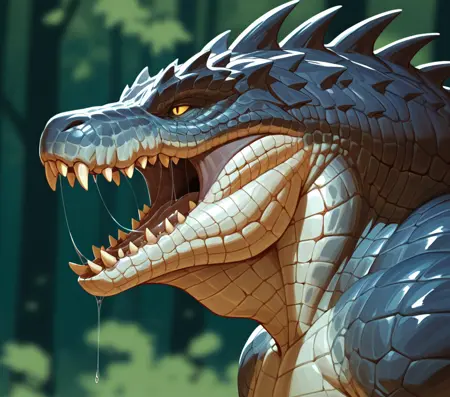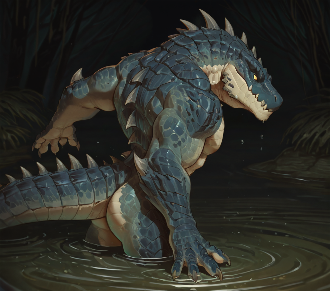 标签:鳄形类,鳄鱼科,鳄鱼,狼鳄,怪物,蜥蜴人,蜥蜴人们,爬行动物,鳞片,板状鳞片,尖刺,背部尖刺,带刺脊椎,锋利牙齿,尾巴,爪子,肌肉发达,
