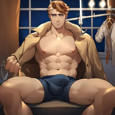 bara, muscular male,slim, blue eyes, facial hair ,stubble, multicolored hair,brown hair, white hair, short hair,
