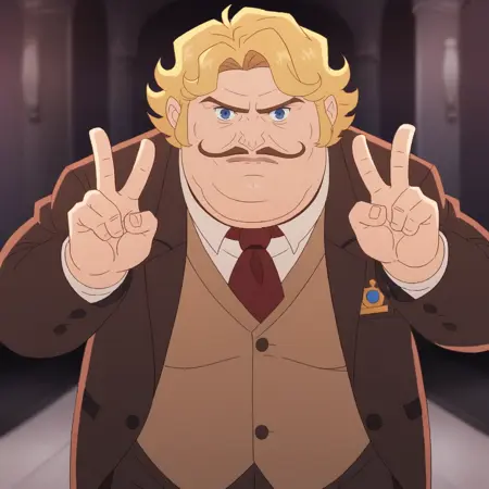 TheGovernor, 1boy, solo, blonde hair, short hair, blue eyes, brown mustache, fat man,