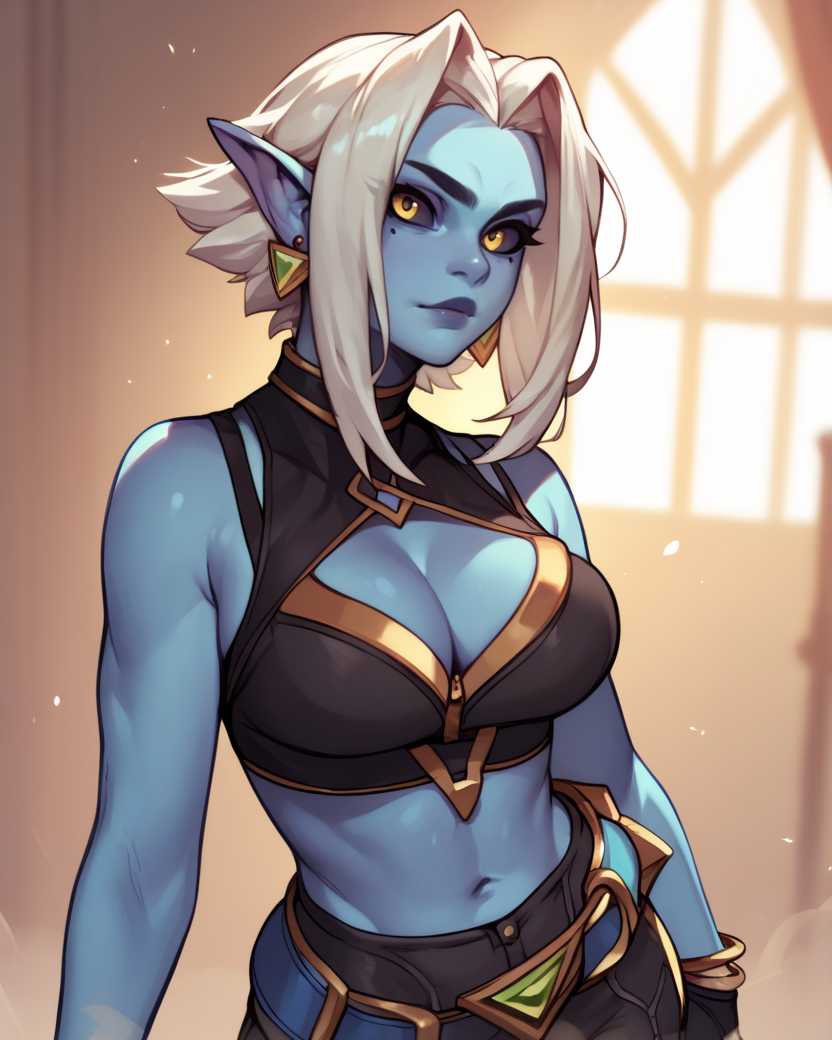 - blue skin, or blue-skinned female, if styles alter skin tone