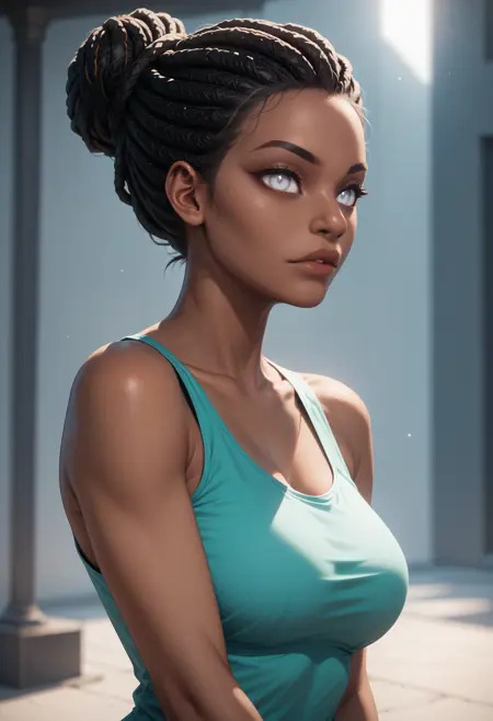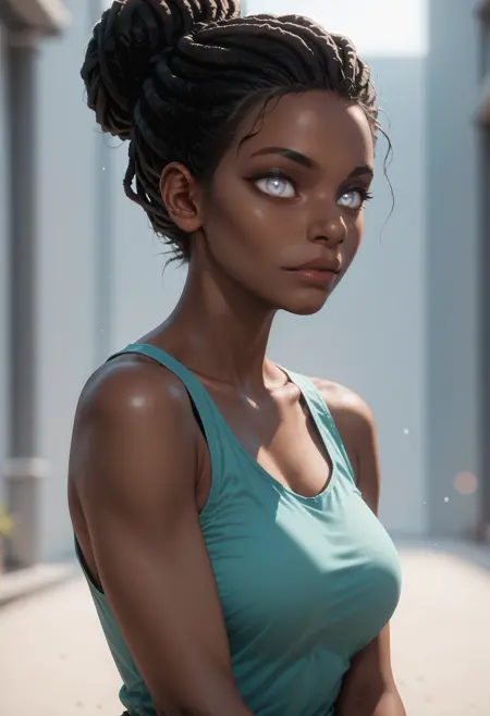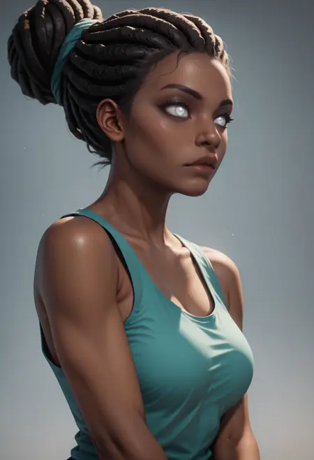 主要: d4rkb3r34, white eyes, black hair:dreadlocks:single hair bun,