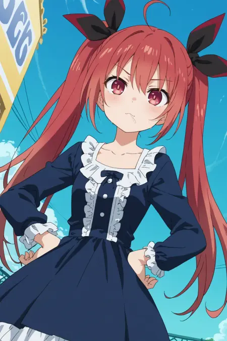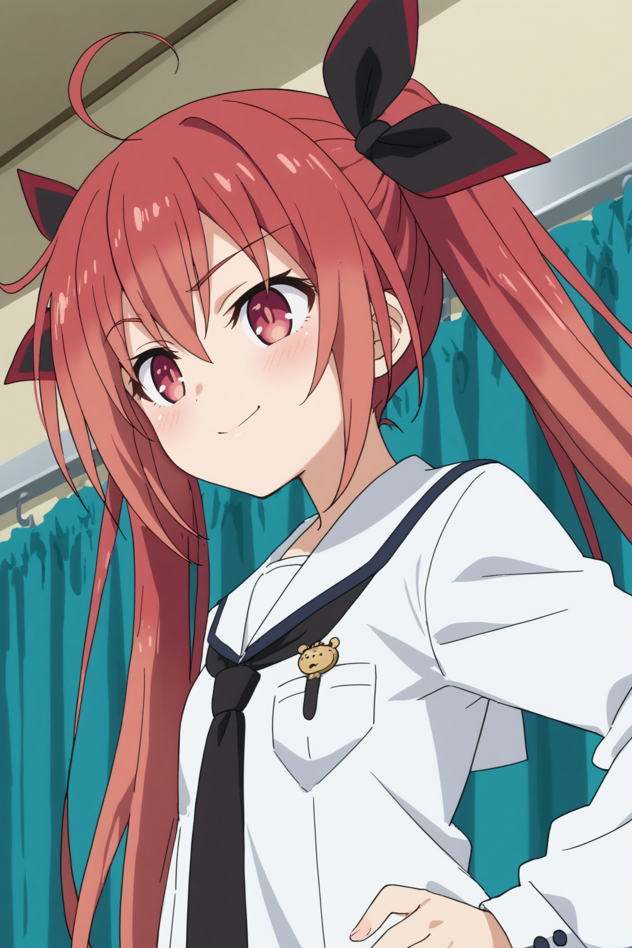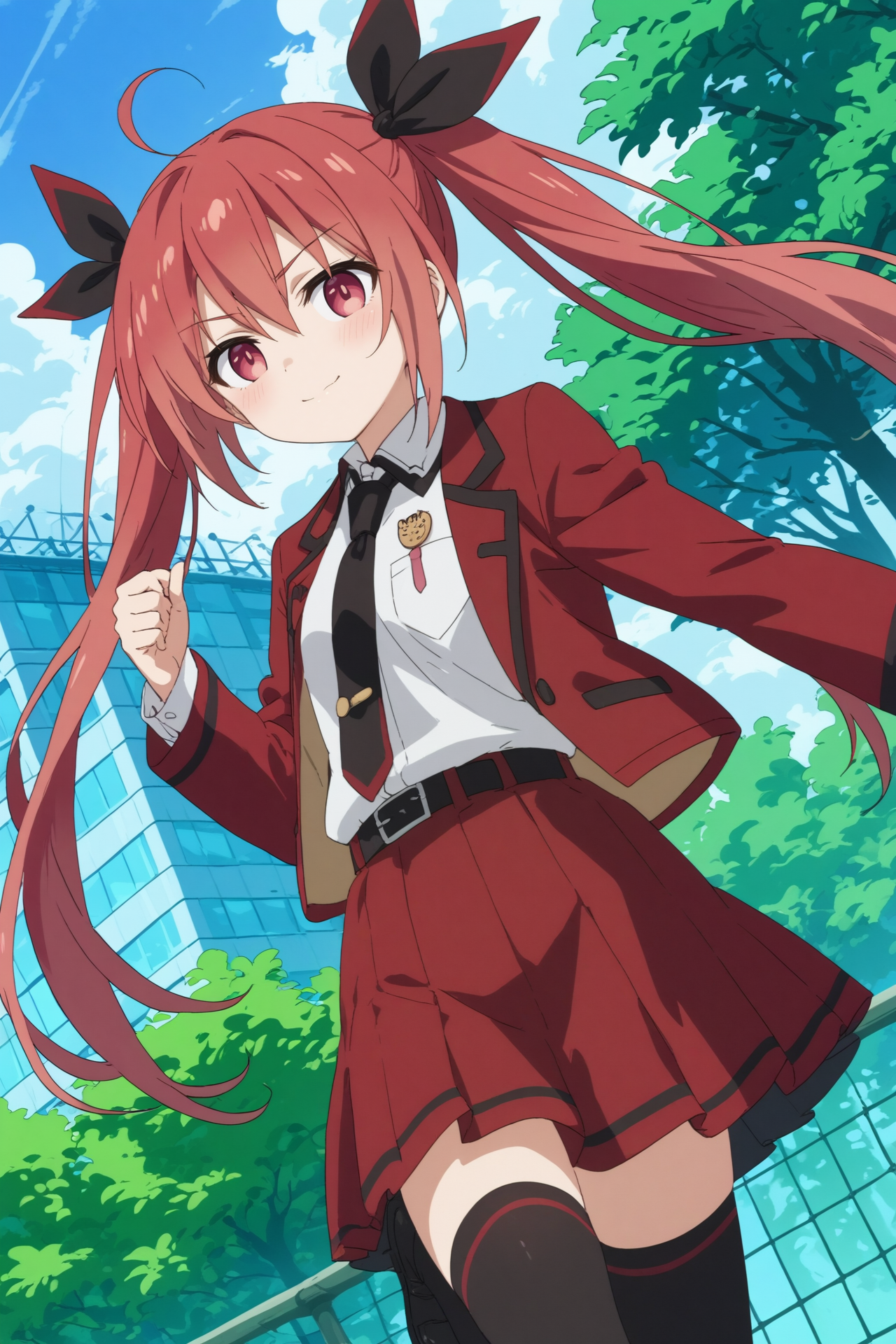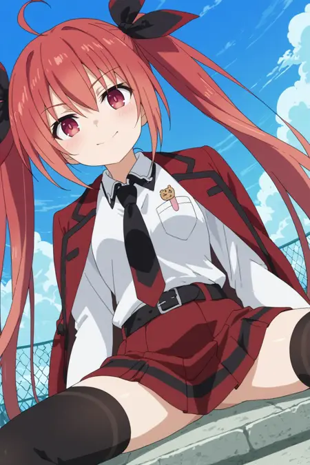 触发词:1girl,solo,kotori itsuka,long hair,school uniform,twintails,smile,hair ribbon,ahoge,black necktie