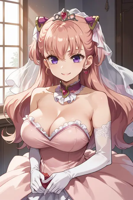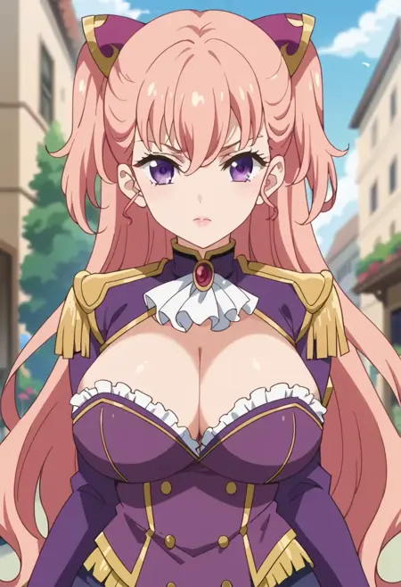 Charlotte Scherzen, purple eyes, long hair, pink hair, large breasts