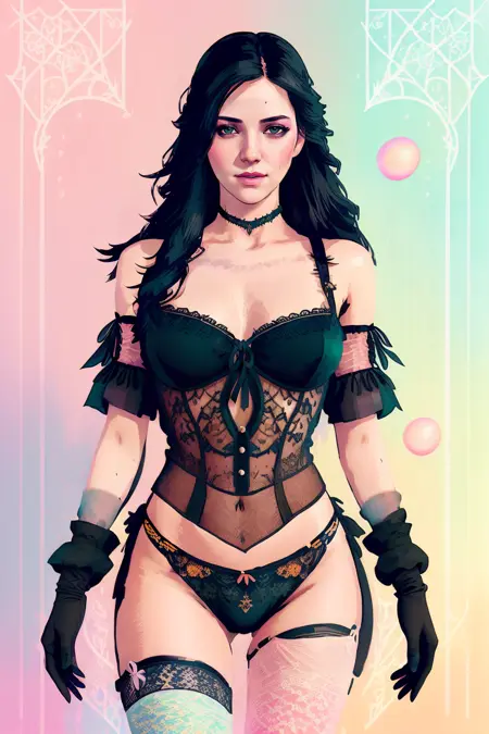 키워드는 Yennefer이며, "yen_dress", "yen_costume", "yen_underware"도 추천하지만, 안타깝게도 토큰이 원하는만큼 잘 작동하지는 않음.