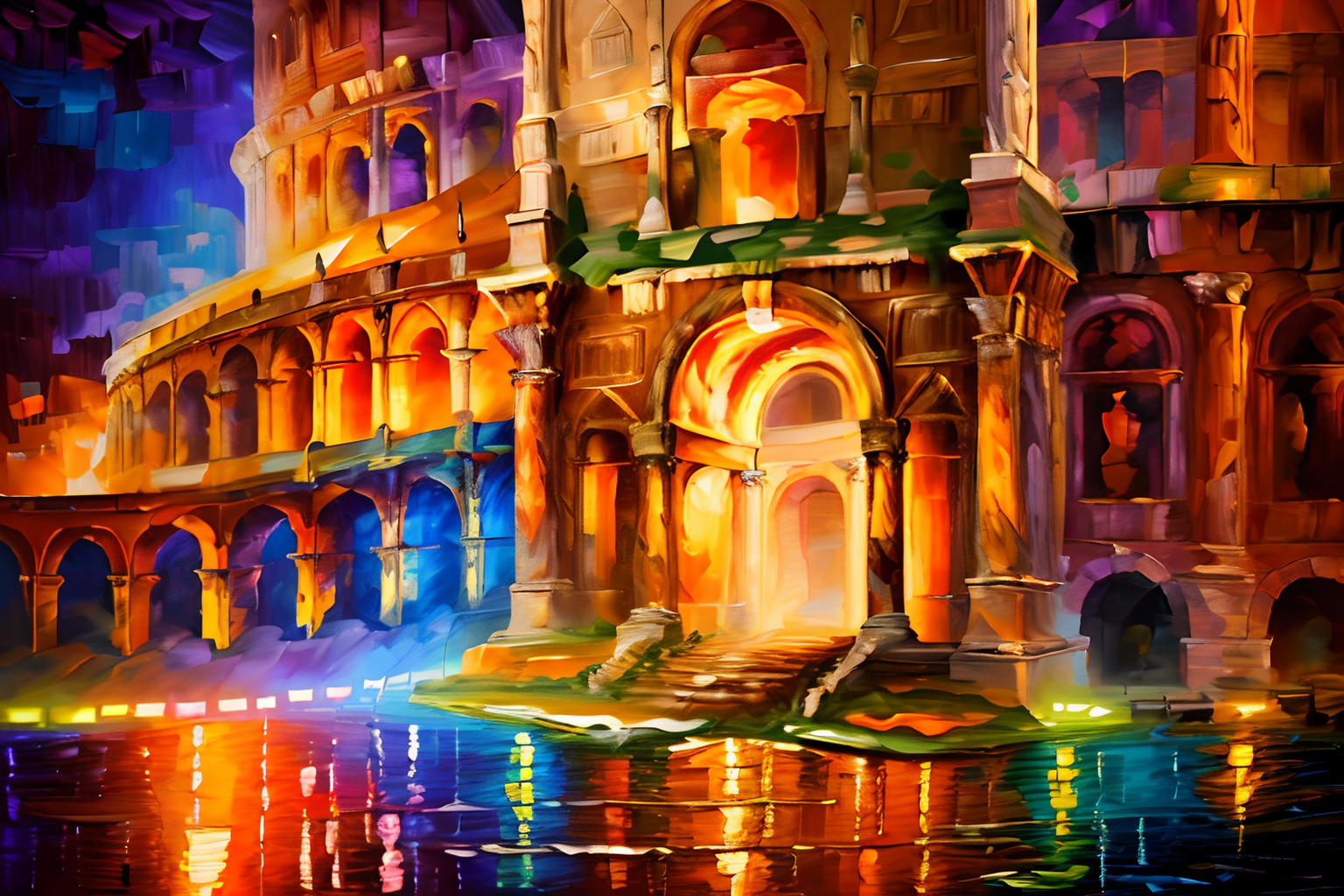 로마 콜로세움 그림, 생동감 있는 유화, 밝은 깊이감 있는 유화 색채, 고해상도 유화, 인상파 유화 lora:afrem0v-000013-768x768x15:0.75, afrem0vDabbs:1.1, afremov