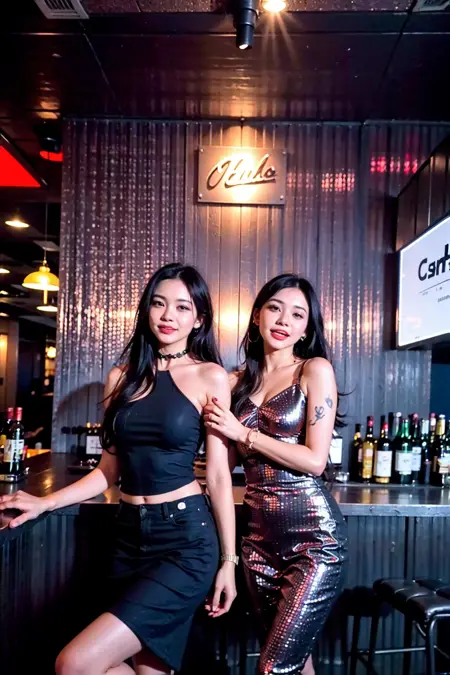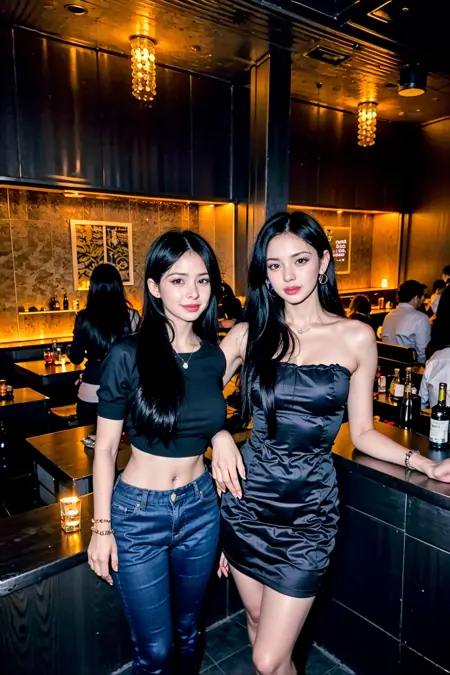 This is a nightclub environment lora, suitable for generating multiple women in a dark environment, the bar is filled with lights of various colors. In such an atmosphere, it is possible for women to do anything unusual, right?