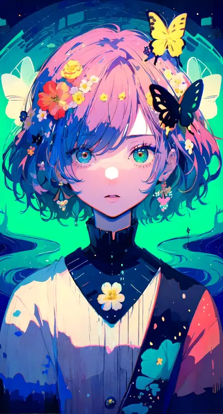 This model can achieve more detailed cool tone accents and background & add color stylization such as halftone dot .