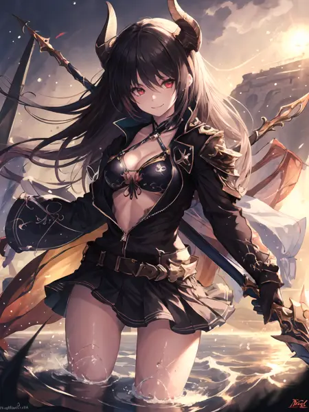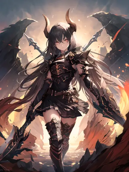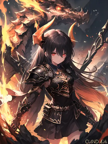 추가 요소: (무기 들고 있음), 창형 무기/장창, 이중 무기 사용, (용을 타고 있음);