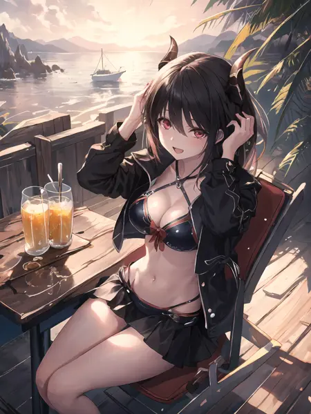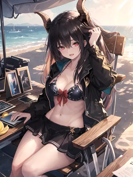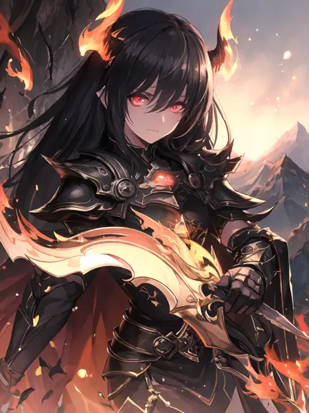 기본 특징: 검은 머리, (긴 머리), 빨간 눈, 뿔;
