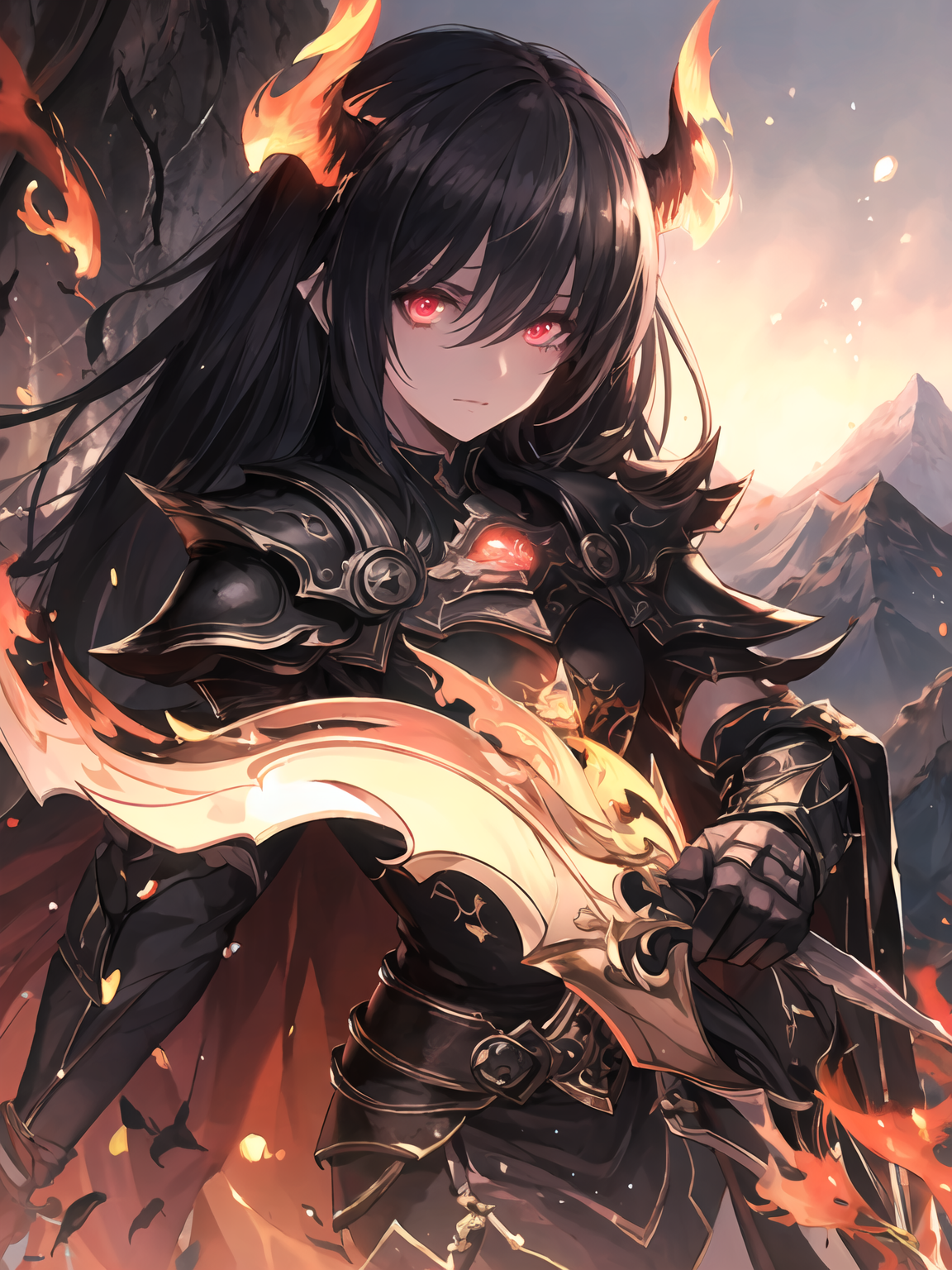 기본 복장: 검은 갑옷, (짧은) 치마, (망토);