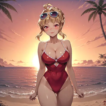 트리거 단어: Lea Dragalia, 금발, 단발, 머리 뾰족, 붉은 눈, 붉은 드레스, 가슴 노출, 프릴 스커트, 겐틀릿, 흰색 허벅지까지 오는 양말, 갑옷 부츠, 하이힐 부츠