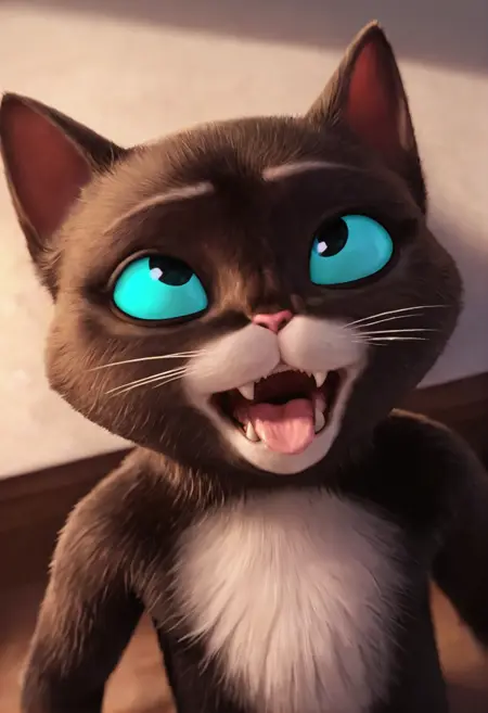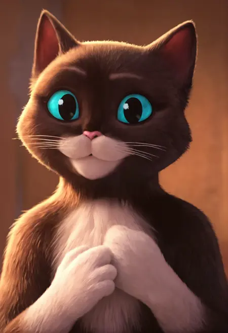 我没有找到《穿靴子的猫:最后的愿望》电影中 Kitty Softpaws 的高质量 LoRA,于是自己训练了一个。我使用了 119 张清晰截图,每张尺寸为 1024x1024,并移除了偶然进入画面的其他角色细节。大部分是面部特写和情绪捕捉,但也包含侧面和全身视角。