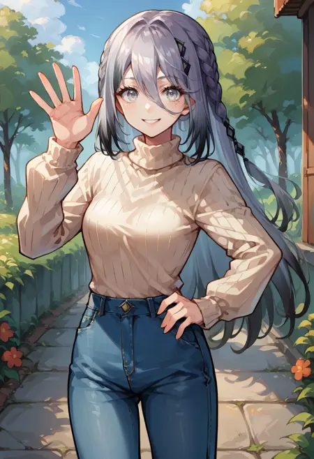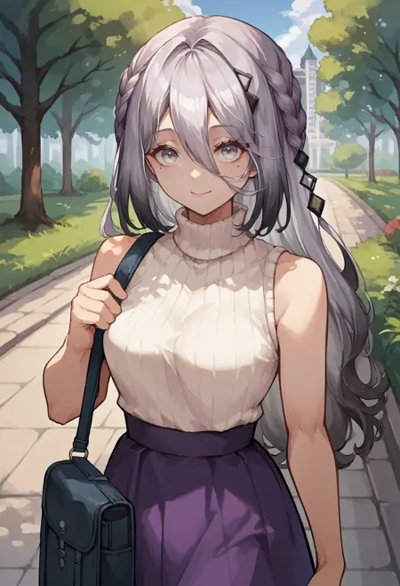 SophiaVln, grey eyes, multicolored hair, long hair, braid, mole
