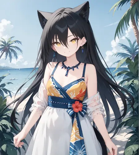 她的头发非常长,有时我建议移除标签“长发”,这样头发长度会比较正常。