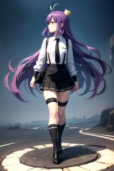 ベース: 長髪、紫髪、金髪、カラーヒア、緑の目、ミニ王冠、あほ毛