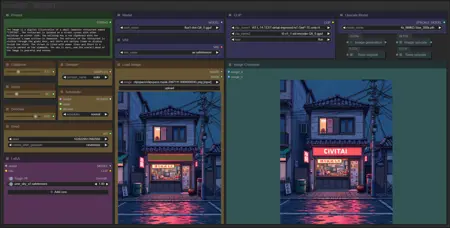 It integrates an upscaler/sampler which, although it takes longer than a classic upscaler, allows for much better quality.