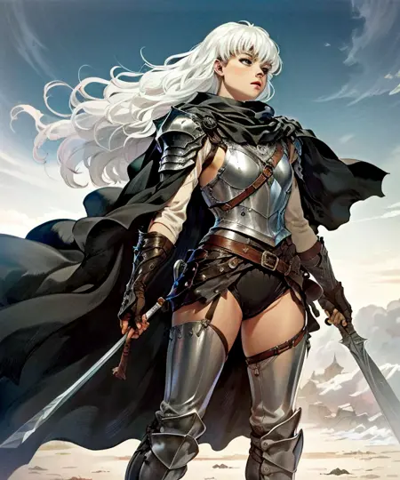 Griffith(《烙印勇士》),白发,性别模糊,板甲,瘦弱,斗篷,米兰式盔甲,秃鹰,《烙印勇士》by Kentaro Miura,