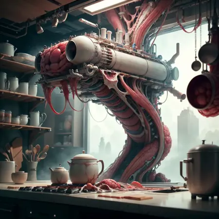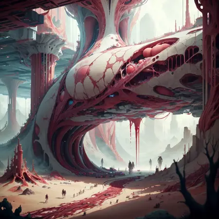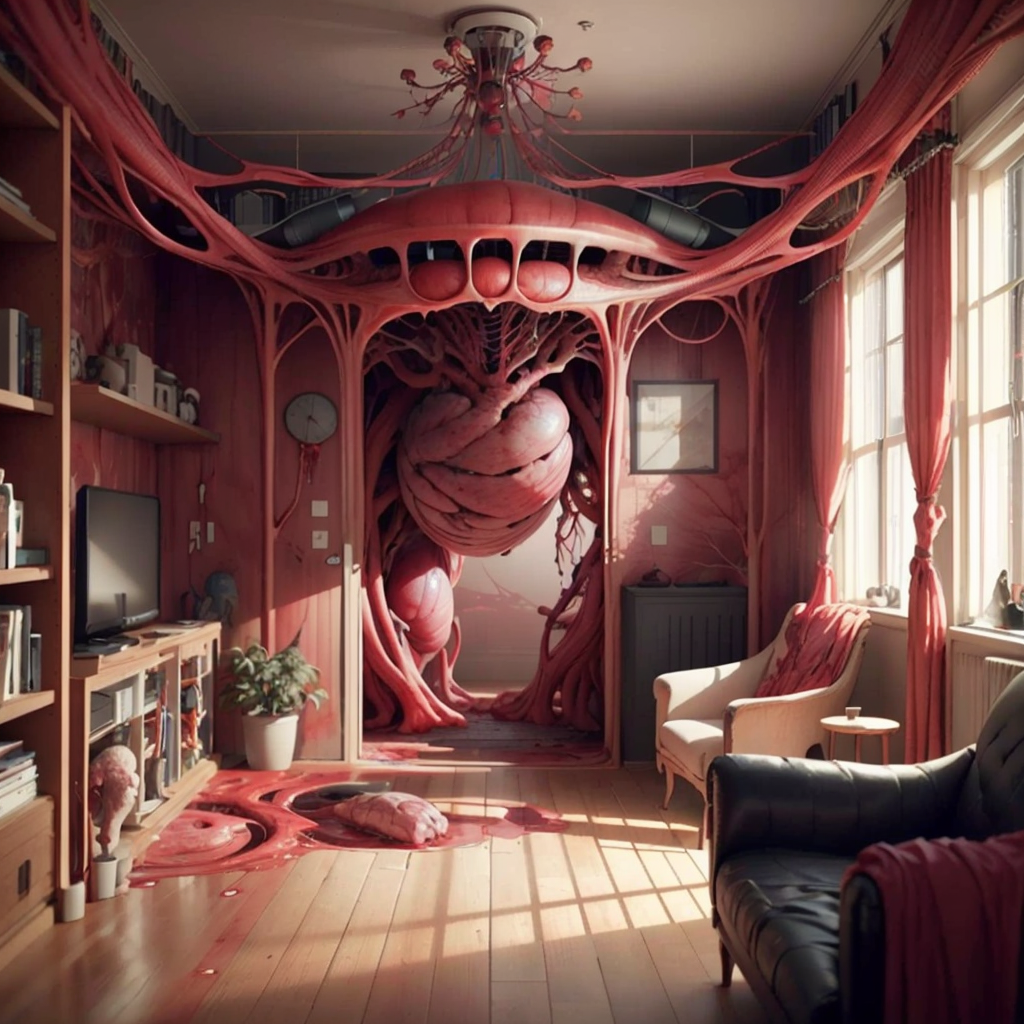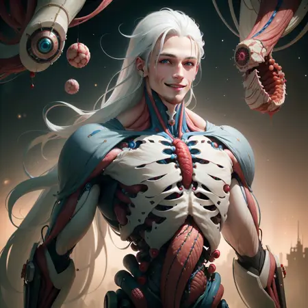 AnatomicTech来激活该模型,且完全可用!不过以下是一些我发现能让生成更有趣的技巧!你可以将任何已知的肢体或器官加入提示词进行装饰,但我始终倾向于搭配