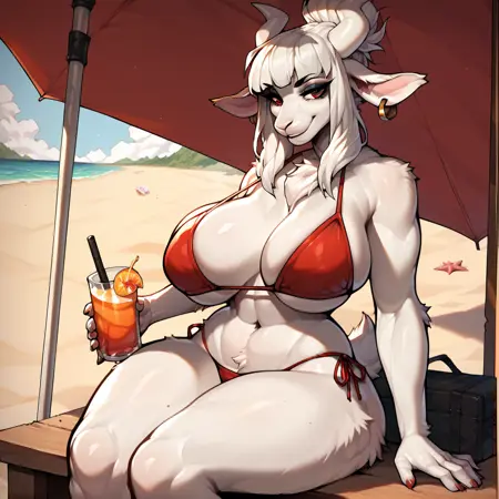 タグ: Goatlucifer、白髪、角、白い角、山羊の耳、山羊娘、山羊の角、フューリーな女性、白い毛、髪飾り、ルシファー\(helltaker\)