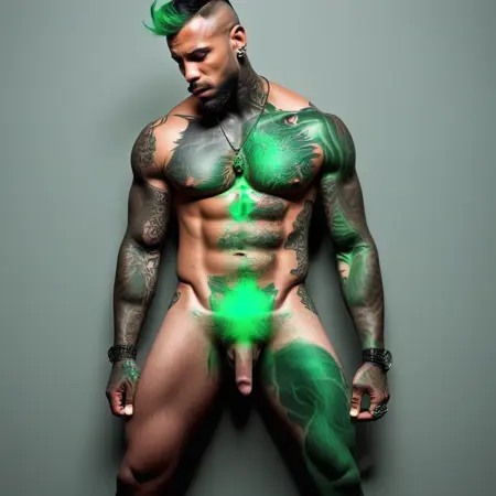 Gunther a kryptonite infused mutant male villain for Superman. Kryptonite radioactive skin or tattoos that show the green radiation. Mutant so genitals vary.